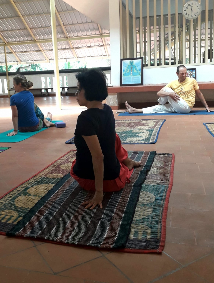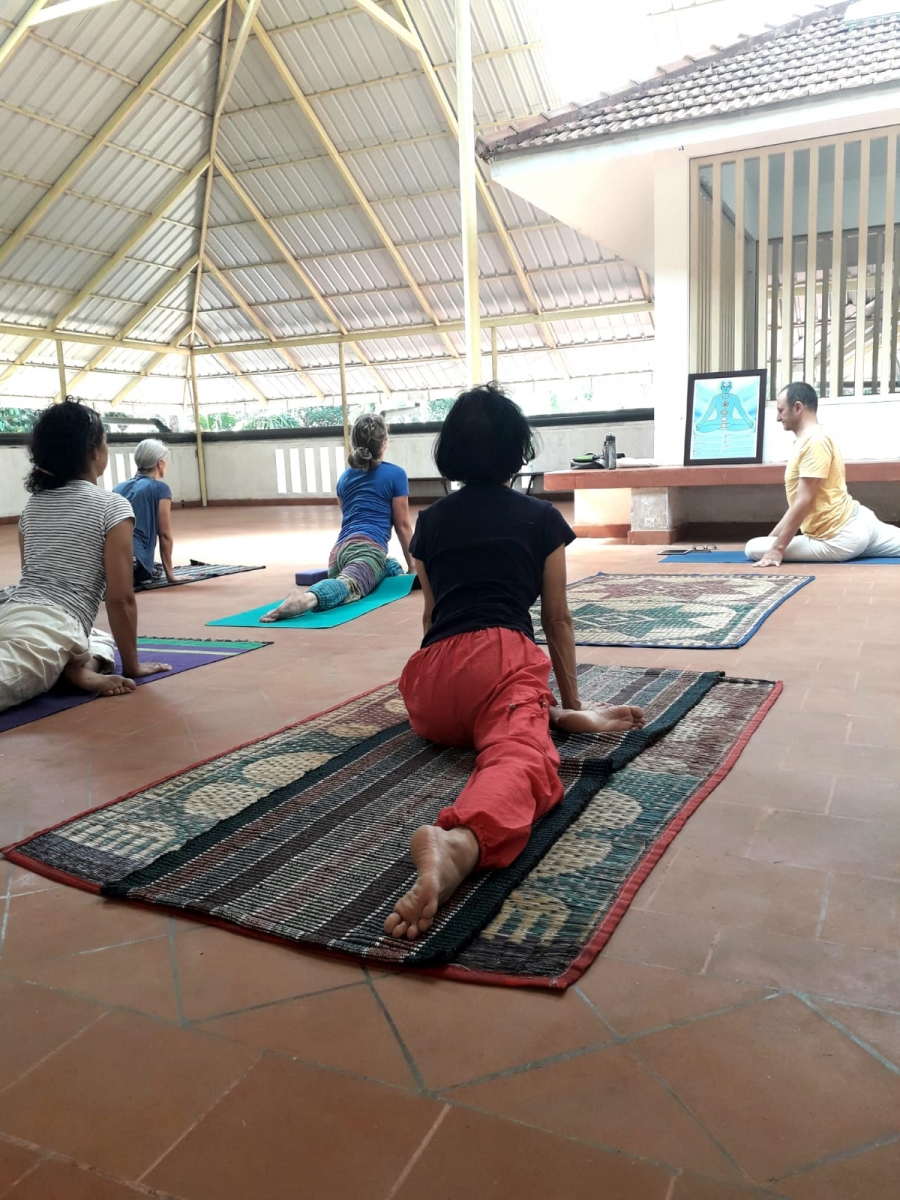 Yin Yoga Training, Arsha yoga Ashram is located in a silent village in front of the Arabian Sea, tropical paradise in Kerala. (700 Km south of Goa) .